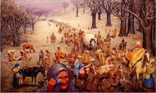 图3-2-2 1838年.约一万七千名印第安却洛奇族人(Cherokee)被迫西迁,四千多人死在西行的“泪之路”上