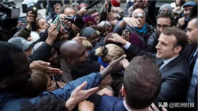 ▲ 图为马克龙2017年11月21日在巴黎参加爱心餐厅协会(Les Restos du coeur)冬季赈济活动,马克龙在此次活动开幕式表示:”正如米歇尔·罗卡尔说过的那样,我们不能承接世界上所有的苦难。“