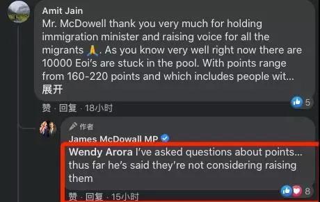 对于人们关心的EOI何时宣布重启的问题,James McDowall也问了移民部长。