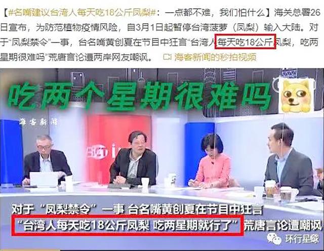 日前,中国台湾地区出产的菠萝查出有害生物,大陆方面当即选择暂停输入。此事在两岸舆论界持续发酵,台湾某名人发出了“每人每天吃十八公斤凤梨很难吗”的世纪之问,给两岸民众的茶余饭后增添了一点笑料。