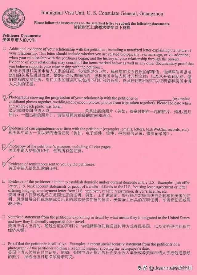 明申请人与美国公民或者绿卡持有者的亲属关系。这是非常重要的一个拒签原因,也是提醒我们准备资料的时候尤其重视的一块;