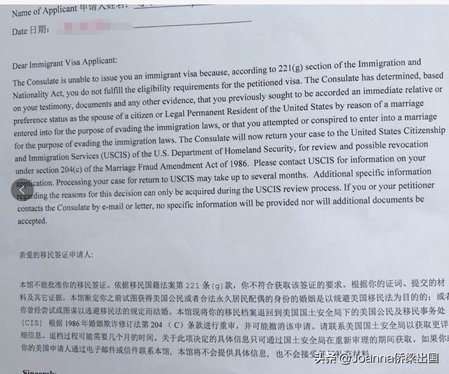 通常这种情况申请人有过违法的记录,如早年曾经和其他人办过婚姻类别的申请,被领事馆认定为商婚。或者早年有在美国偷渡、在美国逾期停留的记录。