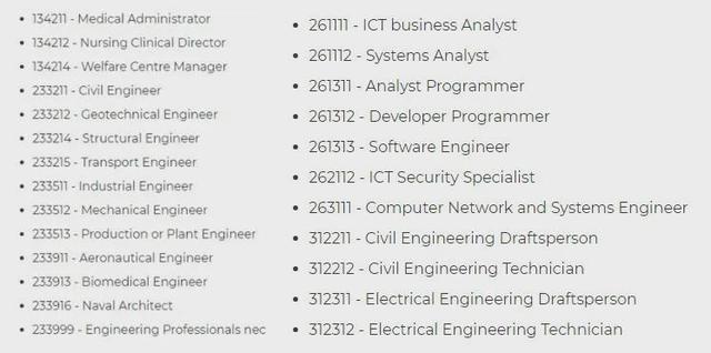 首先来看下新州190的职业清单。下图是新州190清单上的所有职业,可以看到这些职位主要是IT、工程以及医疗类。所以如果你的职业是工程或者IT,那你一定要重点关注,因为你将有非常大的几率拿到新州190!