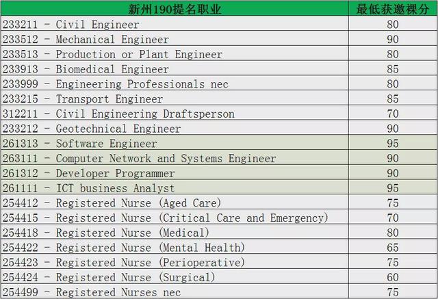 首先要给大家推荐的是新州190,这是大家一定要了解清楚的一个政策,因为它确实是有机会的,并且你选择的成本也是非常低的!(新州491各地区清单里面职位太少,这里就不过多介绍。)