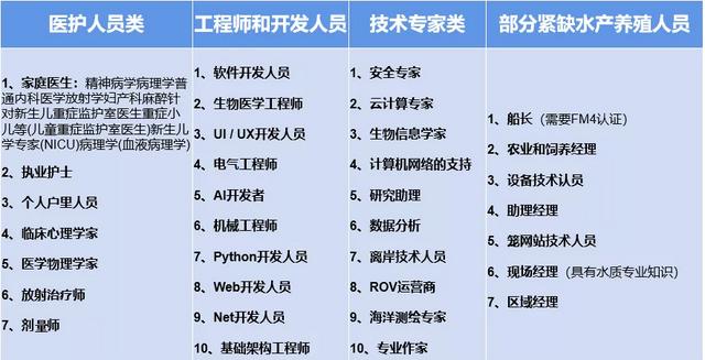 那么对于NL省来说,哪些职业才属于高技术人才呢?以下是官方给出的紧缺职业列表: