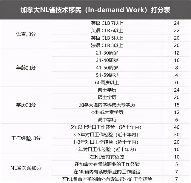 可以看到,NL省相比于其他省份的申请门槛还要是相对较低的,在语言方面只需要达到最低CLB5的雅思水平就可以,工作经验也只需满足1年就行,