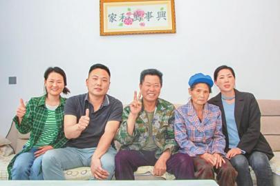 宁南县松新移民安置点王左才一家在新居合影。 卢忠灿摄