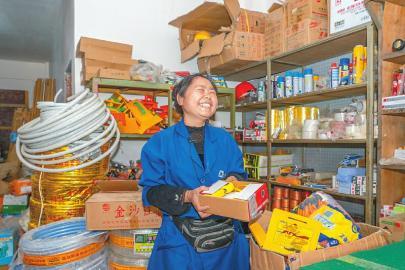 会东小岔河安置区移民明兴树在会东大崇迁建集镇经营五金店。 卢忠灿摄