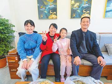 会理县积水安置点刘永高一家在新居合影。卢忠灿摄