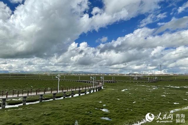 移民搬迁后,居民不仅有门前的休闲广场还有绿色广袤的泽库吉祥草原湿地公园,改变的不仅是人居环境还有生态环境。人民网 陈明菊摄