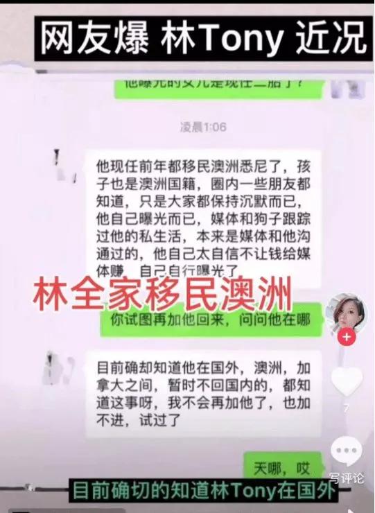 7月4日,有网友爆料称,林生斌的现任妻子早已经在前年就办理了澳洲移民,完成了移民手续并且定居悉尼,而他们的女儿是澳洲国籍。