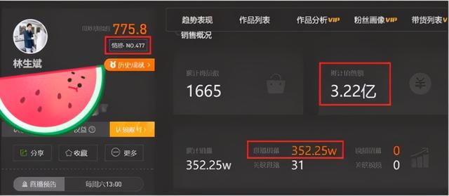 林生斌在某短视频平台上带货的数据更是惊人,短短一年的时间,24场直播,销售额达5877万,累计总销售额高达3.22亿!