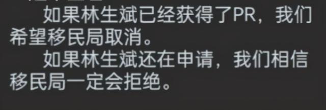 甚至这些当地华侨还喊话澳洲移民局,“如果林生斌已经获得了PR,我们希望移民局取消,如果林生斌还在申请,我们相信移民局一定会拒绝。”