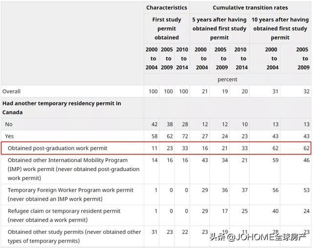 数据显示,那些申请PGWP的留学生在首次获批学签的十年内转化成PR的比例为62%!是整体留学生PR转化率的2倍以上!