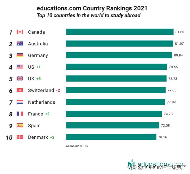 在2021年Education.com最佳留学国排名中,加拿大以81.80的高分再次蝉联第一名,秒杀英、美、澳等一众热门留学国家!