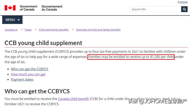 今年5月,加拿大联邦政府宣布在2021年有6岁以下儿童的家庭提供高达1200加币的CCB幼儿补助金(Temporary CCB Young Child Supplement, CCBYCS):。政府表示,家庭净收入不超过12万加币、有权获得牛奶金的家庭,每名6岁以下孩子将获得4笔300加币的补助。