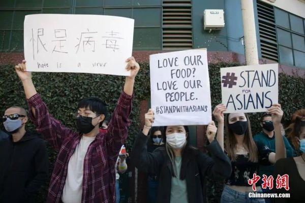 ▲当地时间2021年2月27日,数百人在美国旧金山湾区圣马特奥市参加反对歧视亚裔的集会。(图片来自中新社 刘关关摄)