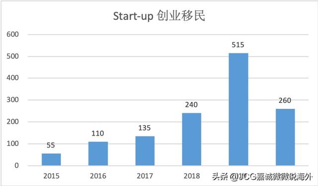 以下统计图表中数字为创业移民种类下发放的所有签证数量,创业类移民除了要计算家庭数量之外,每个申请人可以有5个合伙人做共同主申请人,而每个主申请人都有各自的家庭成员。