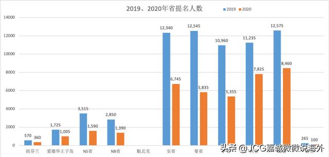 省提名大省包括:安省、BC省、曼省、萨省、阿省,其中BC省位列第一。由于魁北克移民政策独立于联邦及其他12个省份,其部分数据归入联邦项目,因此以下表格不对此做统计。