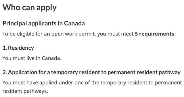 PR主要申请人要有资格获得开放工作许可,你必须满足5个要求: