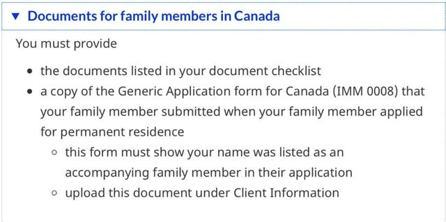 - 递交移民申请时的IMM0008表格副本。该表格中显示了家庭成员信息。