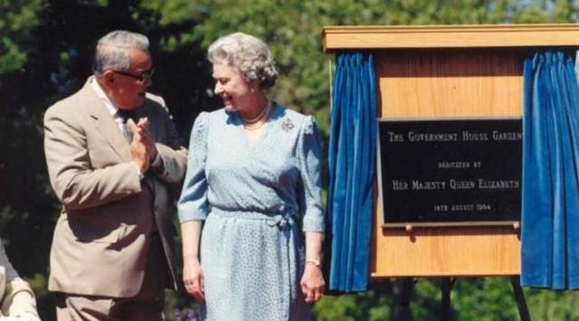 英女王伊丽莎白与林思齐在卑诗省省督府花园重建揭幕式上