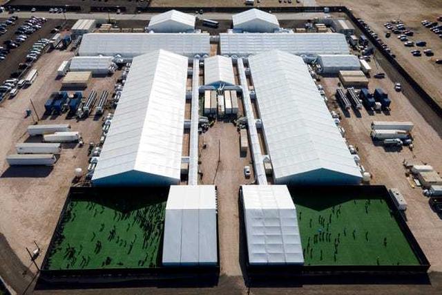 资料图:美国得克萨斯州唐纳市的一处边境设施内收容移民的帐篷。图据CBS新闻
