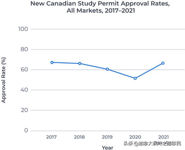 即便是中国作为加拿大第二大留学生来源国家,在2021年前四个月的学签申请获批率更是达到了91%。然而目前5月中旬之后递交的学签申请获批率仅为30%,拒签率高达70%左右。