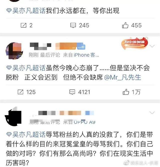 那些失去理智的粉丝,不要仅仅因为是自己的爱豆就可以知法犯法,在中国的领地,无论是谁只要犯了罪就必须受到法律的制裁,所以希望这些失去理智的粉丝能够恢复理智,站在正确的角度看待整个事件,作为一名青年,最重要的为祖国的建设奉献出自己的一份力,而不是在这些事情上迷失自己。