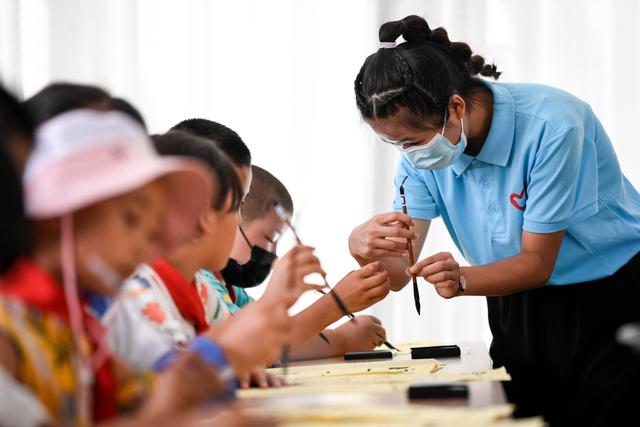 今年,兴庆区通过政府购买服务,在22个行政村(社区)开办为期4周的公益暑托班,公益暑托班上午主要是课业辅导,下午则是毛笔、绘画等特色课程,并免费给孩子提供毛笔、纸张、彩笔等,行政村(社区)也把最宽敞、最好的房间拿出来,为娃娃创造好的条件。