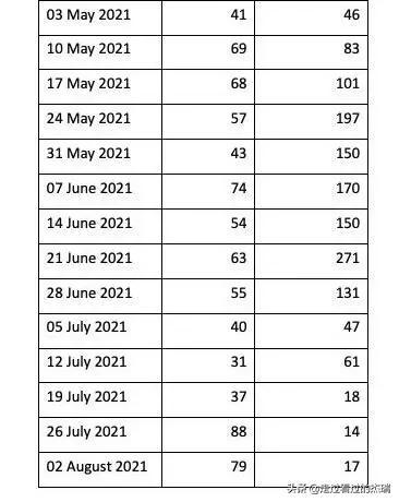 下表是截至2021年8月2日,在岸队列中未被分配移民官的技术居留签证申请数量。