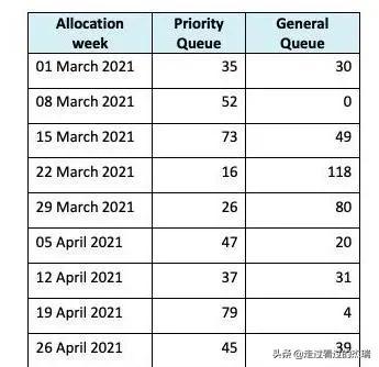 下表是每周在岸普通申请与在岸优先申请的移民官分配情况。