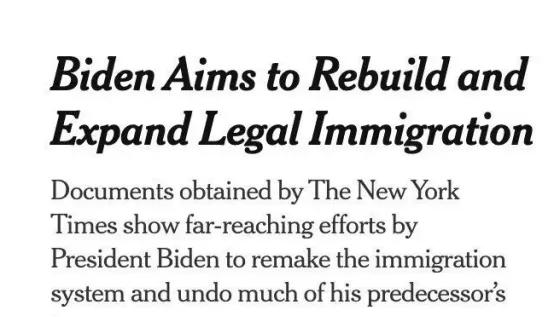 《纽约时报》在今年6月公布了一份标题为“国土安全部合法移民系统信心的计划”的草稿,该草稿长达46页,内容是拜登政府想要大幅扩大移民制度的计划,这份计划从七个部分详细提供了移民政策建议,包括为外籍创业者提供的特殊移民申请途径、通过现有H-1B签证项目吸引更多外国高技术雇员、允许更多的视频会谈和电子申请、减少安全审查程序、增加申请工作签证获准几率等。