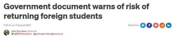 根据这份草案警告,大批海外留学生回到新西兰,会给新西兰带来各种风险。
