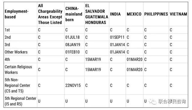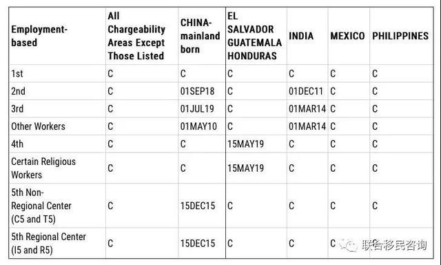 EB-3:技术移民表B排期暂停在2019年7月1日;非技术移民继续原地踏步停留在10年5月1日;