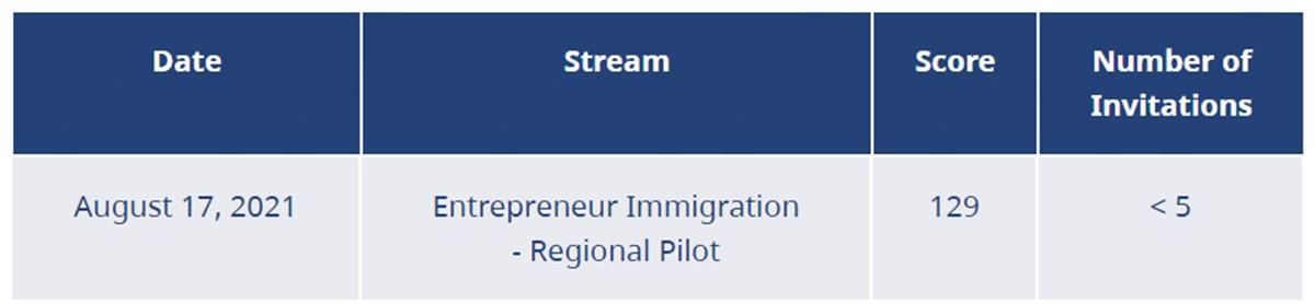 企业家区域试点类别筛选分数129分,邀请了人数近5人,该试点项目面向希望在BC省小社区开展新业务的国际企业家。
