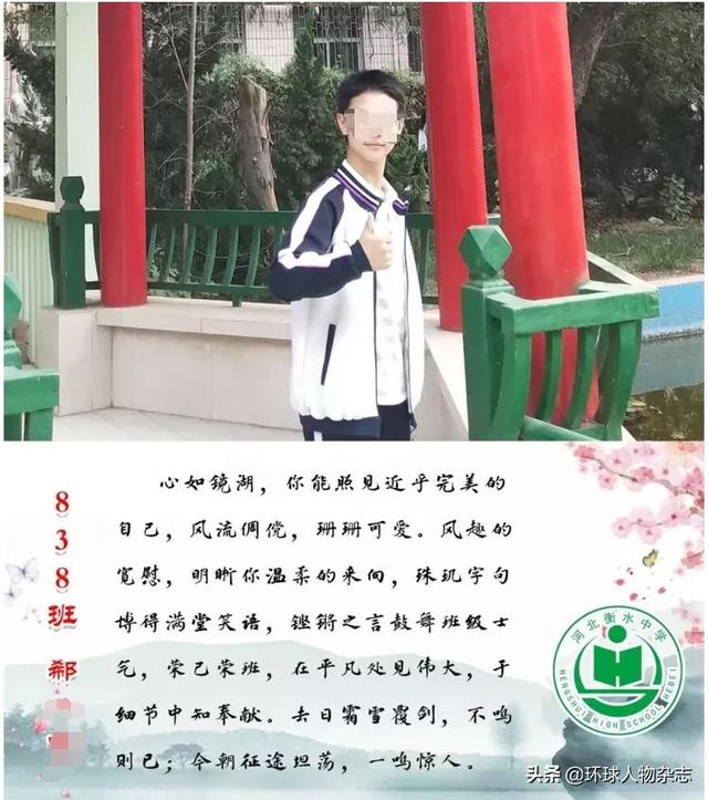 进入衡水中学后,郗某某很快当上了838班的班长。出色的成绩让他很快成为衡中的风云人物,还未读完高一,郗某某就拿到了五次双优班长、五次十佳班长,可以说风光无限。