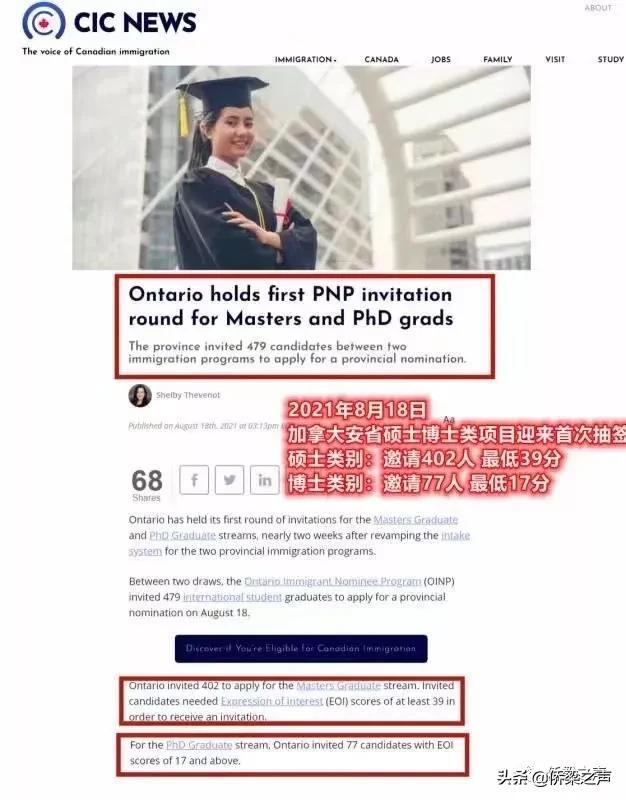 在2021年8月19日,安省硕士博士类项目也迎来首次EOI筛选,硕士类最低39分,邀请人数402人;博士类最低17分,邀请人数77人;此次共计筛选479人。