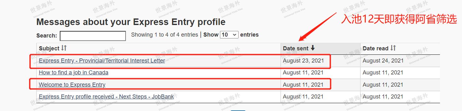 恭喜客户邹先生入池12天获得阿省省提名筛选