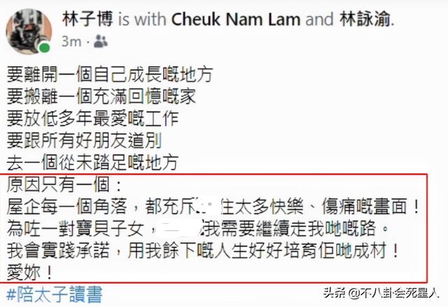 近日,有媒体报道香港艺人林子博带着一对子女移民英国居住,林子博还发文感慨要离开一个自己成长的地方。