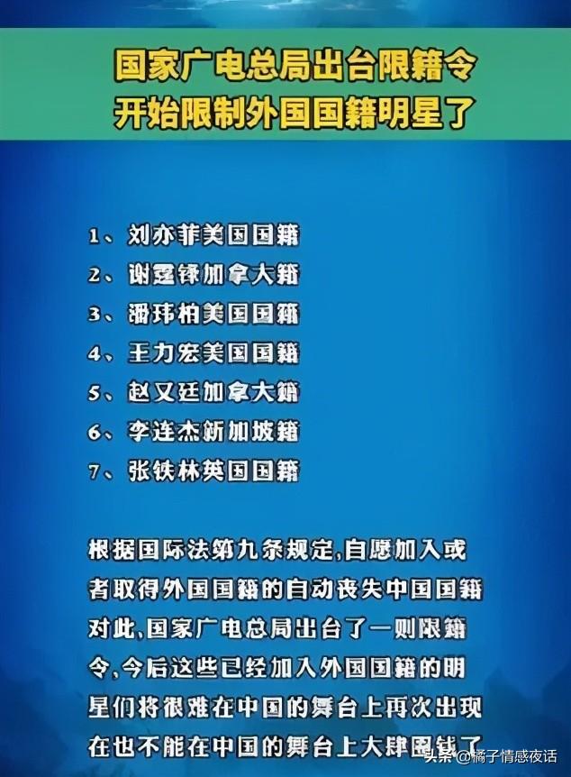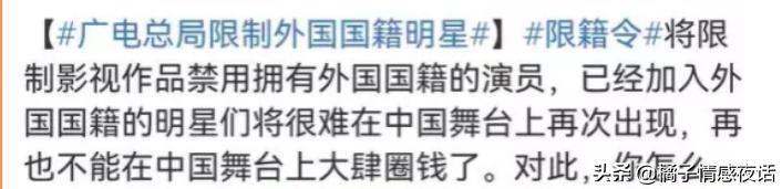 而且,广电总局发布的“限籍令”也再次被重提起,这个条例,也是炸出了很多拿着天价片酬的外籍明星!