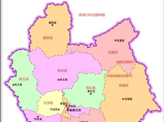 张家口市总面积3.63万平方千米,市辖10个县(张北、康保、沽源、尚义、蔚县、阳原、怀安、怀来、涿鹿、赤城),6个区(桥东、桥西、宣化、下花园、崇礼、万全)。