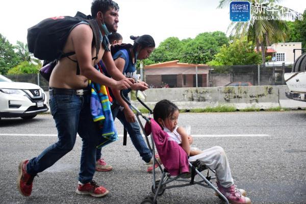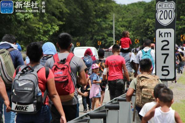 ↑9月4日,在墨西哥恰帕斯州塔帕丘拉,“移民大篷车”队伍向美国进发。新华社发(达米安·桑切斯摄)