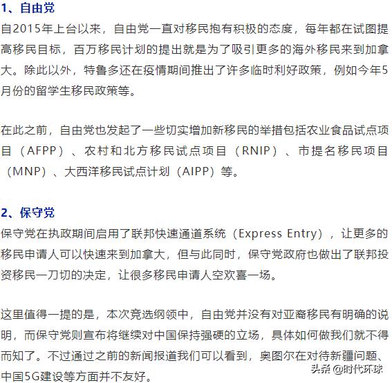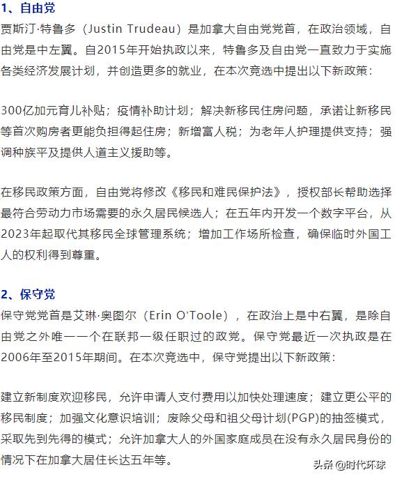 因为加拿大主要执政党为自由党和保守党,目前的支持率也是两党领先,所以接下来我们主要看一下自由党和保守党本次竞选纲领以及在执政过程中有哪些政策和举动。