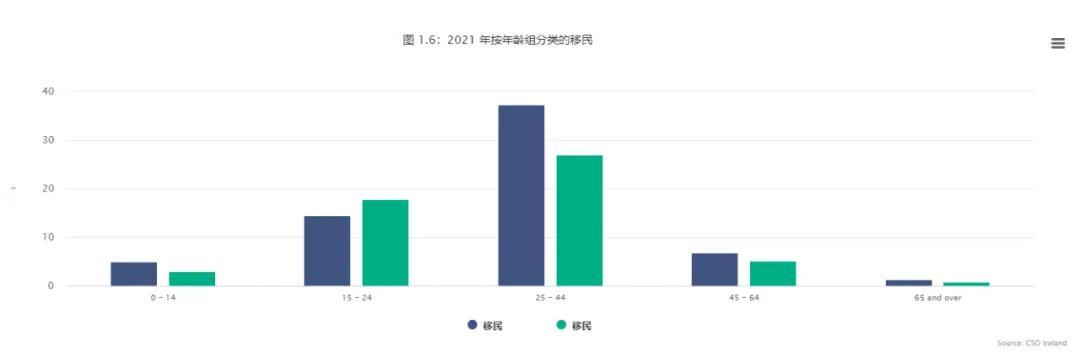 在截至 2021 年 4 过去的一年中,大多数移民的年龄在 25-44 岁之间,有 37,400 移民,约占总数的五分之三(57.3%)和 27,000 名移民(占总数的一半)属于这一年龄组。
