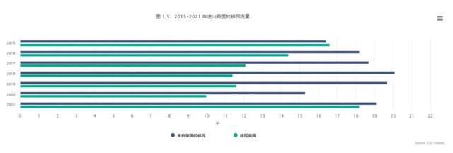 在截至 2021 年 4 月的一年里,移民到爱尔兰的人数估计为 65,200 人,而从爱尔兰移民海外的人数估计为54,000人。净移民人数达到 11,200 人,而前一年为28,900 人。由于新冠疫情和流动限制等原因,爱尔兰入境和出境的移民人数都有所下降。