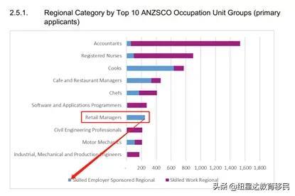 在这三个职业中,‘零售经理 Retail Manager’在偏远地区491移民中榜上有名,申请走雇主担保的占到了近100%。