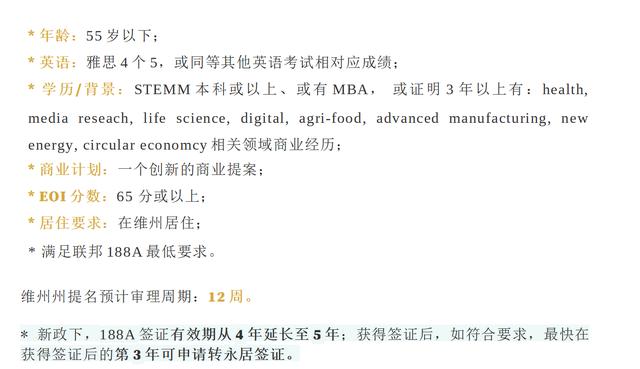 维州,家庭净资产要求150万澳币起,从图片中可以看到申请要求中包含了语言成绩和学历。这一颠覆传统的变更,似乎是在说“我们只需要精英中的精英”。为什么原来188A会那么火?对于国内来说,188A规避了中国大多数企业家存在的不足,就是语言和学历障碍,而现在却被维州政府拿出来当条件了。而之所以会出现这样的变更,墨尔本的一部分的传言是省政府的一位亚裔高级官员因贪污下马,联邦为了防止再出现这种事情而收紧了限制;而另一部分说法是维州的投资移民已经供大于求,这次分配给维州的投资移民配额比较少,于是少而专精。