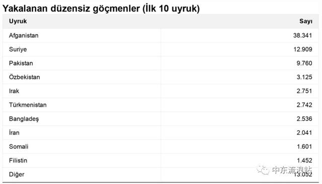● 土耳其移民局公布的2021年1-8月被捕的外国非法移民来源国名单,排在前十的依次为阿富汗、叙利亚、巴基斯坦�乌兹别克斯坦��、伊拉克�土库曼斯坦��、孟加拉国、伊朗、索马里�巴勒斯坦��