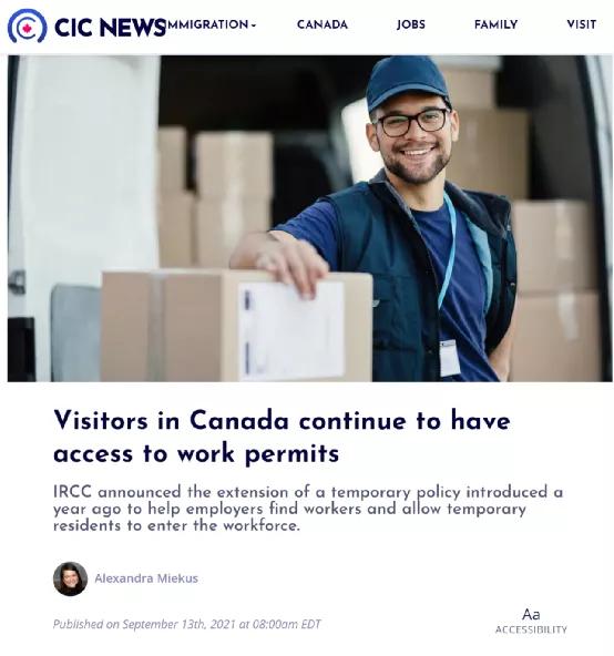 据CIC News 9月13日报道,IRCC宣布将一项临时政策延长至2022年2月28日,允许所有符合规定的游客申请工作签证。